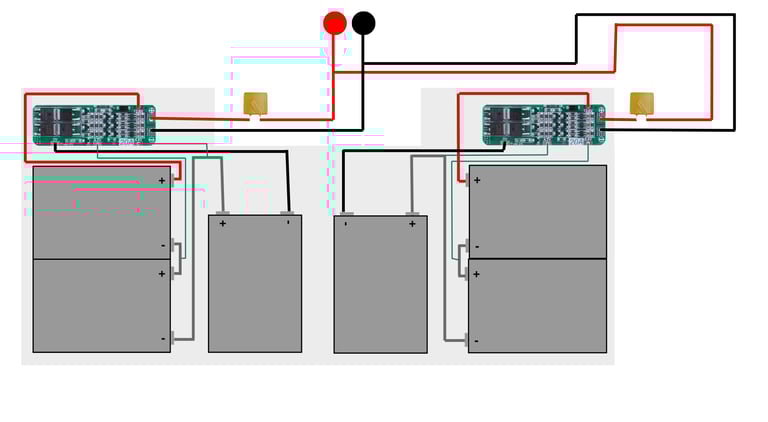 Y después unir ambos packs en paralelo, para tener un único pack final manteniendo la tensión y ganando capacidad